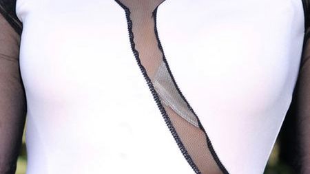 nie obyło się bez wpadki. Do tak odważnej kreacji aktorka dobrała biały biustonosz, który widać było nawet z daleka. Raczej nie o taki efekt chodziło... KJ/AOS*