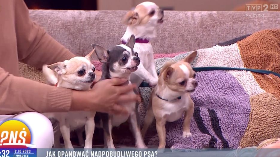 - Wzięliśmy je do studia telewizyjnego, które jest absolutnie nie psie. Tutaj jest tak dużo rzeczy, tyle nowych osób, nowe światło, siedzimy na sofie w bardzo bliskiej odległości... Do tego trzeba się przyzwyczaić, a nie każdy to potrafi. Nawet widać, że jedni nasi goście radzą sobie z tym lepiej, inni zdecydowanie gorzej - mówił na przykładzie leżących obok czterech chihuahua behawiorysta Paweł Lachowicz.