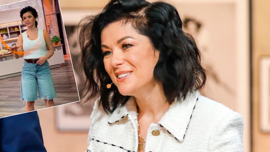 Kasia Cichopek w poszarpanych, krótkich dżinsach na planie "Pytania na śniadanie" TVP. Czy to był dobry wybór?