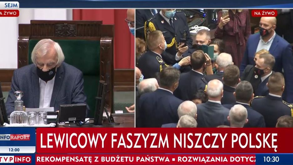 Krajowa Rada Radiofonii i Telewizji wydała decyzję w sprawie skargi na paski TVP Info podczas emisji obrad Sejmu z dnia 27 października 2020 r. Pokazywano hasła m.in. "Lewicowy faszyzm niszczy Polskę", "Opozycja chce sparaliżować państwo", "Opozycja chce anarchii, bo przegrała wybory". W wieczornych "Wiadomościach" tego dnia również przywołano pasek "Lewacki faszyzm niszczy Polskę". Zdaniem rady "wyemitowane paski informacyjne mogły być podyktowane bieżącą dramaturgią wydarzeń".
