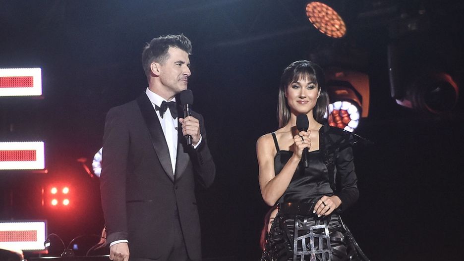 Tomasz Kammel wystąpił w klasycznym zestawie: czarny garnitur, mucha i biała koszula. Ida Nowakowska także ubrała się w czerń, ale jej kreację trudno nazwać klasyczną.