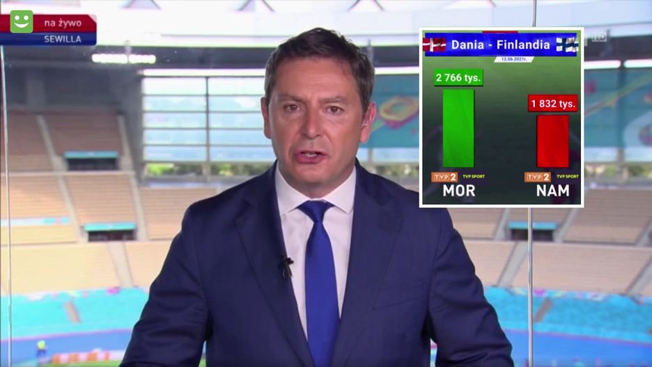 Dla porównania zaprezentowano wyniki oglądalności dotychczasowych spotkań Euro 2020 przeprowadzone przez pracownię Nielsena i Mor.