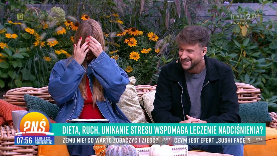 - Przepraszam, pana życie seksualne mnie w tym momencie nie interesuje, ale chętnie posłucham - mówił z uśmiechem internista, czym rozbawił prezenterów niemalże do łez. Kamera uchwyciła moment, gdy Tomaszewska zasłania twarz tabliczką z notatkami, a Sikora również nie był w stanie ukryć rozbawienia.