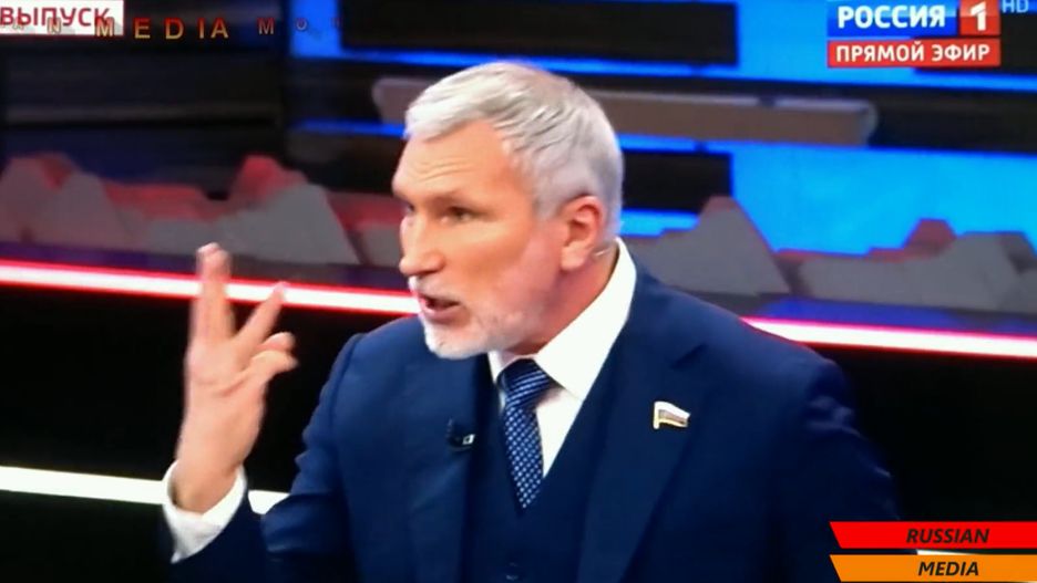 Aleksiej Żurawliow to stały gość propagandowej telewizji Rossija 1, a zarazem jeden z czołowych polityków na pasku Putina. W ostatnim programie na żywo opowiadał, że do zniszczenia USA wystarczą cztery rakiety, a w Ukrainie trzeba zamordować 2 mln ludzi. Reakcja prezentera i gości w studiu na te słowa była jednoznaczna.