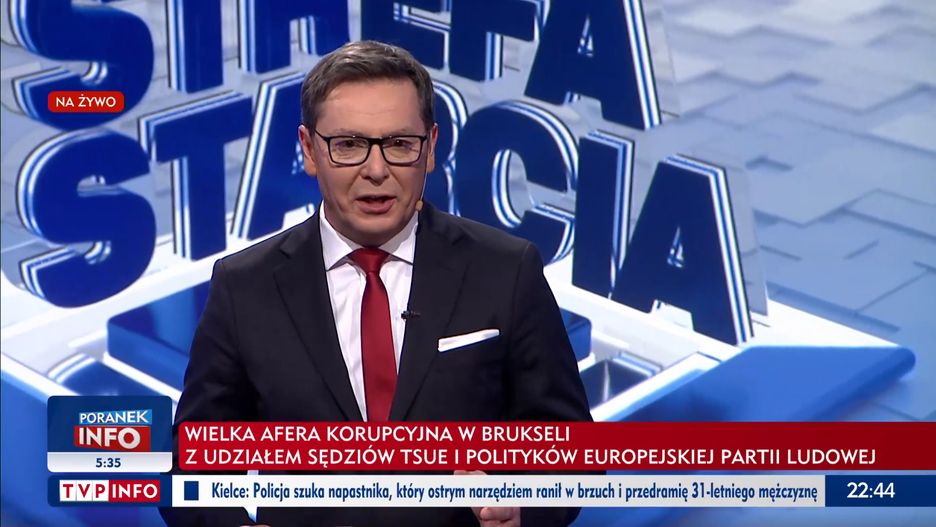 W niedzielnym programie na żywo "Strefa starcia" w TVP Info politycy różnych partii debatowali m.in. o aferze na szczytach władzy w Unii Europejskiej. Sprawa uderza bezpośrednio w środowisko Donalda Tuska. Kiedy posłanka Lewicy odbiła piłeczkę i zapytała o aferę Łukasza Mejzy z PiS-u, prowadzący Michał Adamczyk wtrącił dwa zdania, które były szczytem hipokryzji.