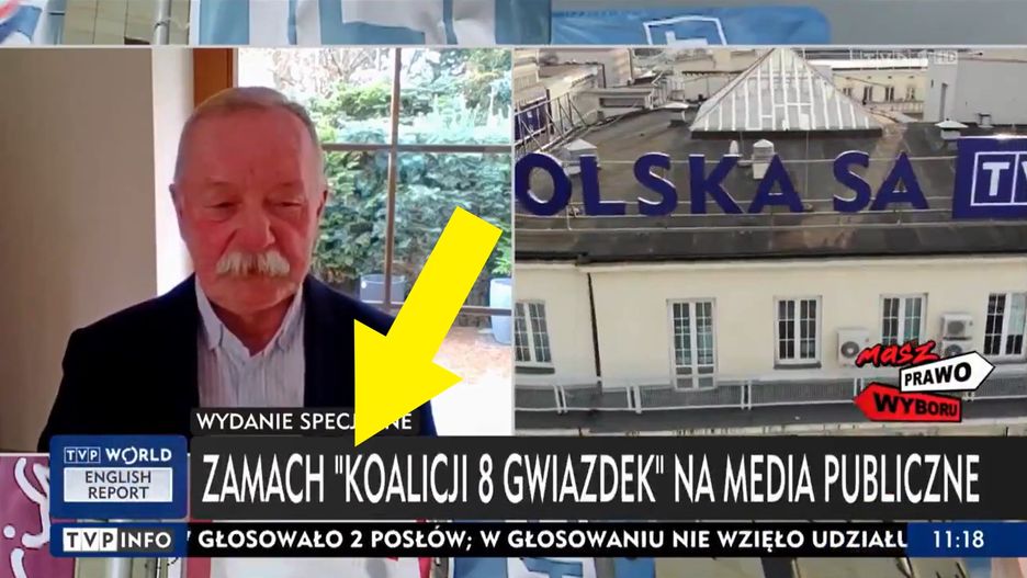 Wypowiedź została urwana, gdy u dołu ekranu pojawiło się hasło: "Zamach ‘koalicji ośmiu gwiazdek’ na media publiczne". Ten historyczny "pasek" był wyświetlany dosłownie przez jedną sekundę.
