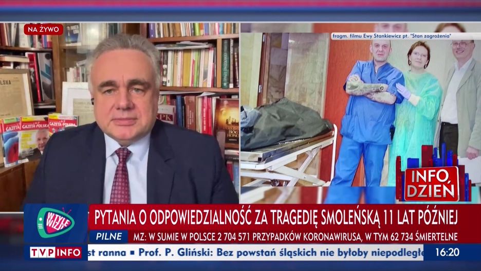 Tomasz Sakiewicz, redaktor naczelny "Gazety Polskiej", bardzo często gości na antenie TVP Info. 20 kwietnia został poproszony o komentarz w programie "Info dzień". Mówił o katastrofie smoleńskiej w kontekście filmu "Stan zagrożenia", wielokrotnie usuwanego z ramówki TVP. Dokument Ewy Stankiewicz w końcu został pokazany w Jedynce 18 kwietnia i na nowo rozpalił dyskusję wokół teorii o zamachu z użyciem ładunków wybuchowych.