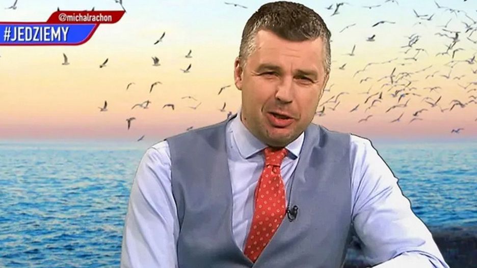 Minutowe wideo rozpoczyna się od słów Michała Rachonia i promocji programu "Jedziemy!": - Witamy w domu wolnego słowa.